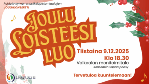PKMO laulajien joulukonsertti Valkealan monitoimitalolla tiistaina 9.12.2025 klo 18.30.